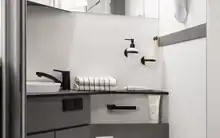 Depósitos de agua limpia de 110 L (20 L en marcha) y residual de 90 L