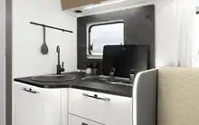 Depósitos de agua limpia de 110 L (20 L en marcha) y residual de 90 L