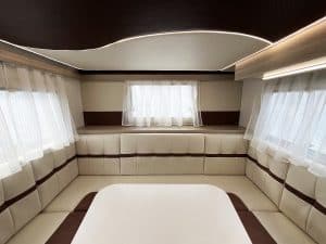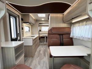 La autocaravana 650PLUS H Premium es un vehículo semi-integral que se caracteriza por su amplio y práctico salón trasero en forma de U.