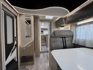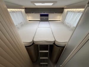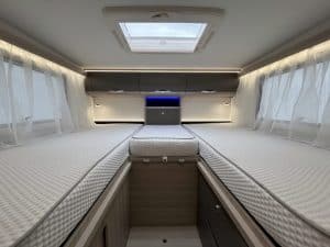 La autocaravana Ilusion 740 Premium es un vehículo de gran versatilidad, donde familias aventureras podrán disfrutar de sus viajes de una manera muy especial. Esta perfilada tiene un diseño trasero que permite la posibilidad de disponer de dos amplias camas separadas, convertibles en una gran cama familiar. Es posible además añadir una cama abatible para aquellas familias más numerosas.