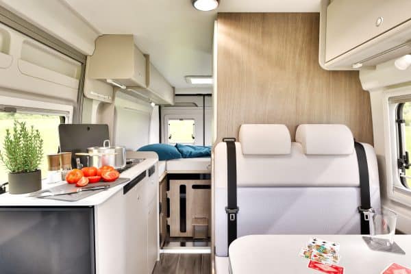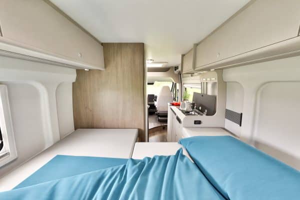 Este modelo sobre chasis Fiat Ducato es tu mejor aliado. Compacta, potente y con una distribución muy práctica, permite moverte con soltura por carreteras de montaña, pueblos costeros y ciudad, con confort para 4 plazas de viaje y hasta 4 plazas de noche según configuración.